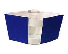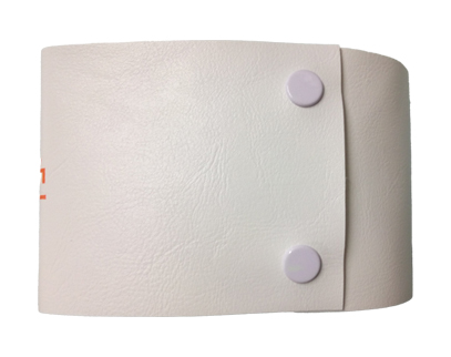 軽くて腕にフィットし、作業の邪魔になりません。また、安全ピンを使わないので、接触事故の防止にもなります。通常の洗濯できますので、衛生的にお使いできます。通常は輪仕立てですが、特注でマジックテープ式にも作成できます。