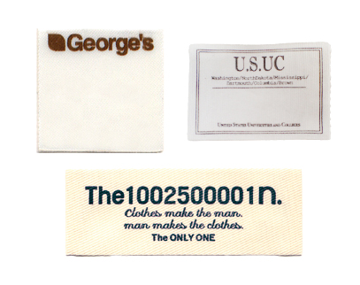 最低ロット100枚より承りますが、小ロットの場合は織ネームの方がお安くなります。弊社でネームをご注文された方に限り取り付けも承ります。