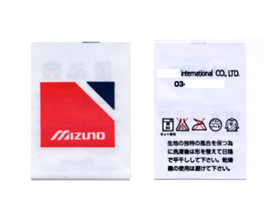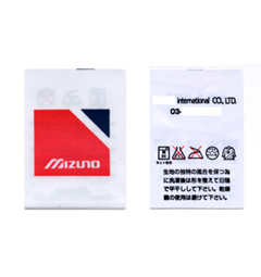 シーリング印刷より安価で品質表示・サイズネームが出来ます。生地はナイロン生地に両面コートしたニックセブンと、ポリエステルサテン地のネオサテンから選べます。
