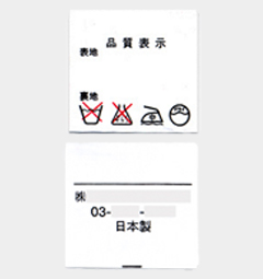 平成28年(2016年)12月1日(木)以降に生産する製品につきましては、新しいJIS表示の洗濯表示・品質表示ネームを取り付ける必要がございます。