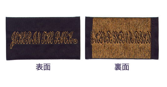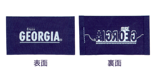 フルバックではない場合に比べて厚みが出ます。マットタイプで厚みが欲しい場合には最適です。 朱子織では表現出来ない細かな文字も可能です。 マットタイプで細かい文字がなく厚みだけが欲しい場合はシャトル裏朱子織の方が綺麗に仕上がります。 細かい文字で、背景を白もしくはパステルなどの明色にする場合、背景に文字色が映りますので注意が必要です。