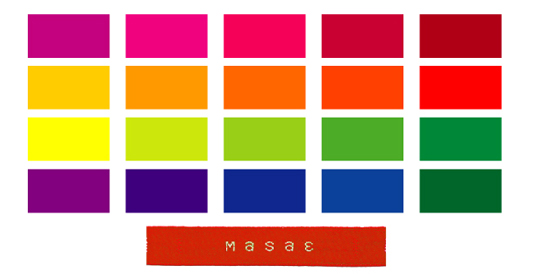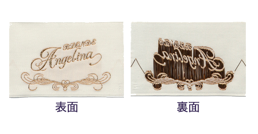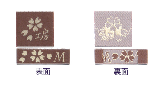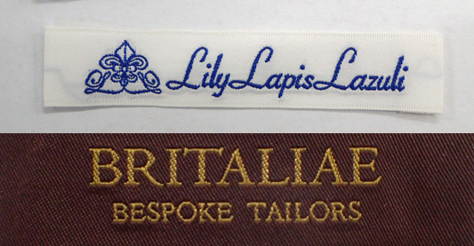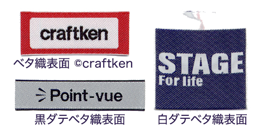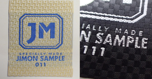 また、ベースの色に関しましては原色に近い鮮やかな色は、通常の織りネームでは出来ない代わりに、後染めまたはベタ織の2通りの織り方で表現いたします。